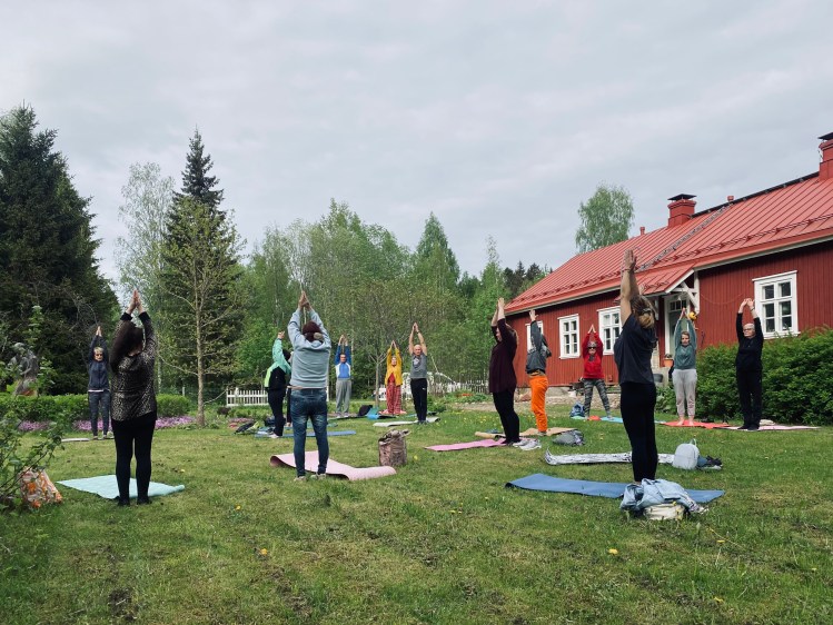 Lisäksi lähden aina mielelläni ohjaamaan joogaa erilaisille ryhmille, jonkun teeman mukaan. Jooga-sessio jonkun juhlan tai kokoamisen tai vaikka yrityksen tapahtuman osana on järjestettävissä helposti ja sujuvasti! Lue lisää tästä: https://alfarytmi.com/yrityksille-ja-ryhmille/